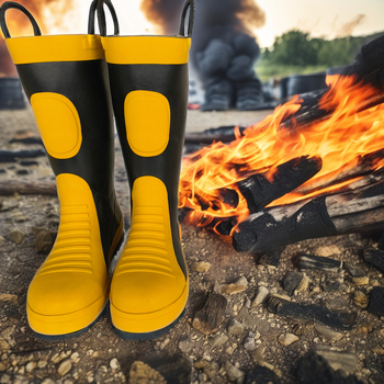 รองเท้าเซฟตี้ดับเพลิงและกู้ภัยรองเท้ายางกันไฟพร้อมอุปกรณ์และอุปกรณ์เสริม